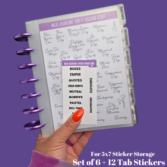 5x7 Tabbed Dividers-Sticker Storage (Set of 6)