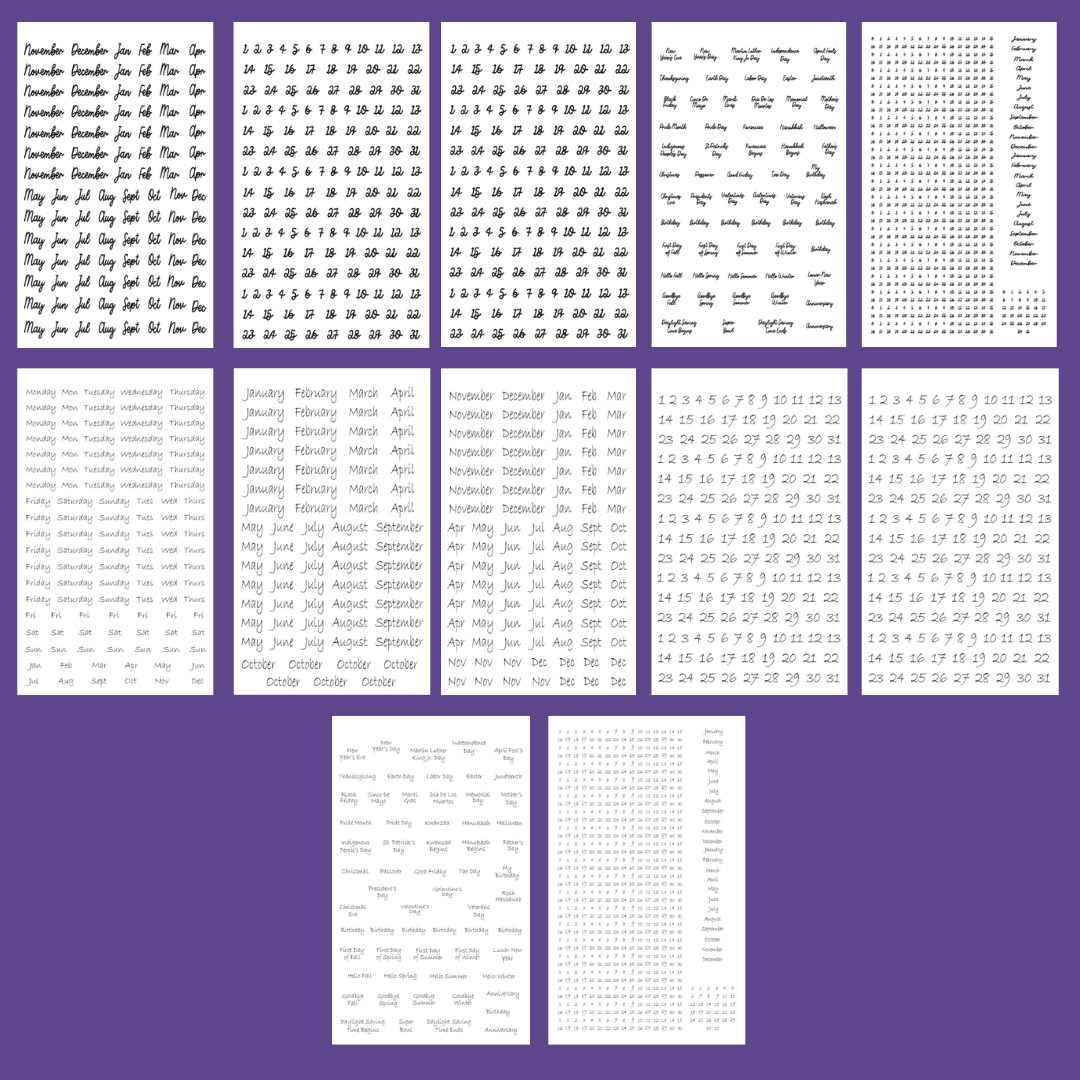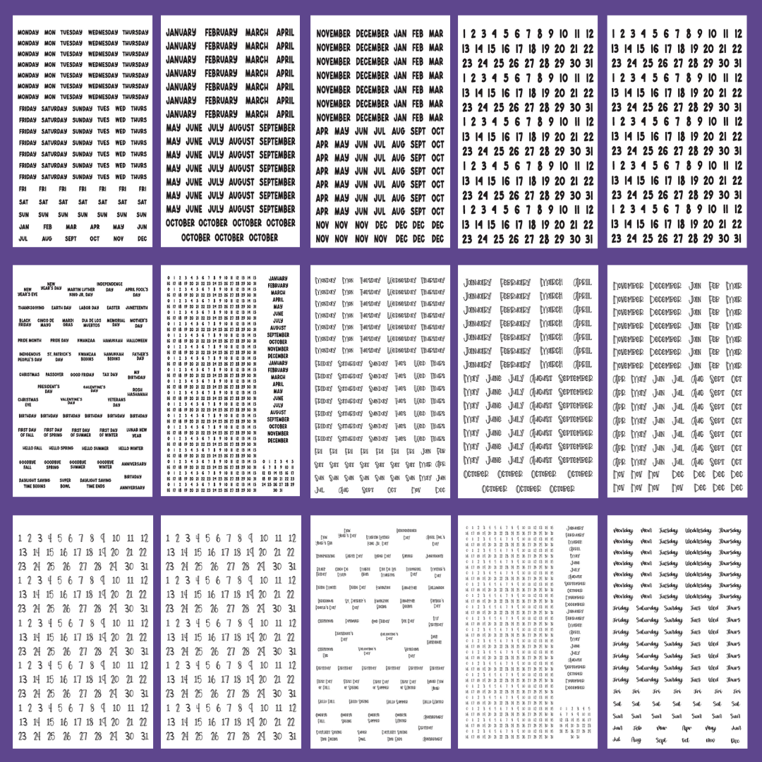 With six different font styles and stickers for months, days, numbers, and holidays, setting up any planner becomes quick and effortless.