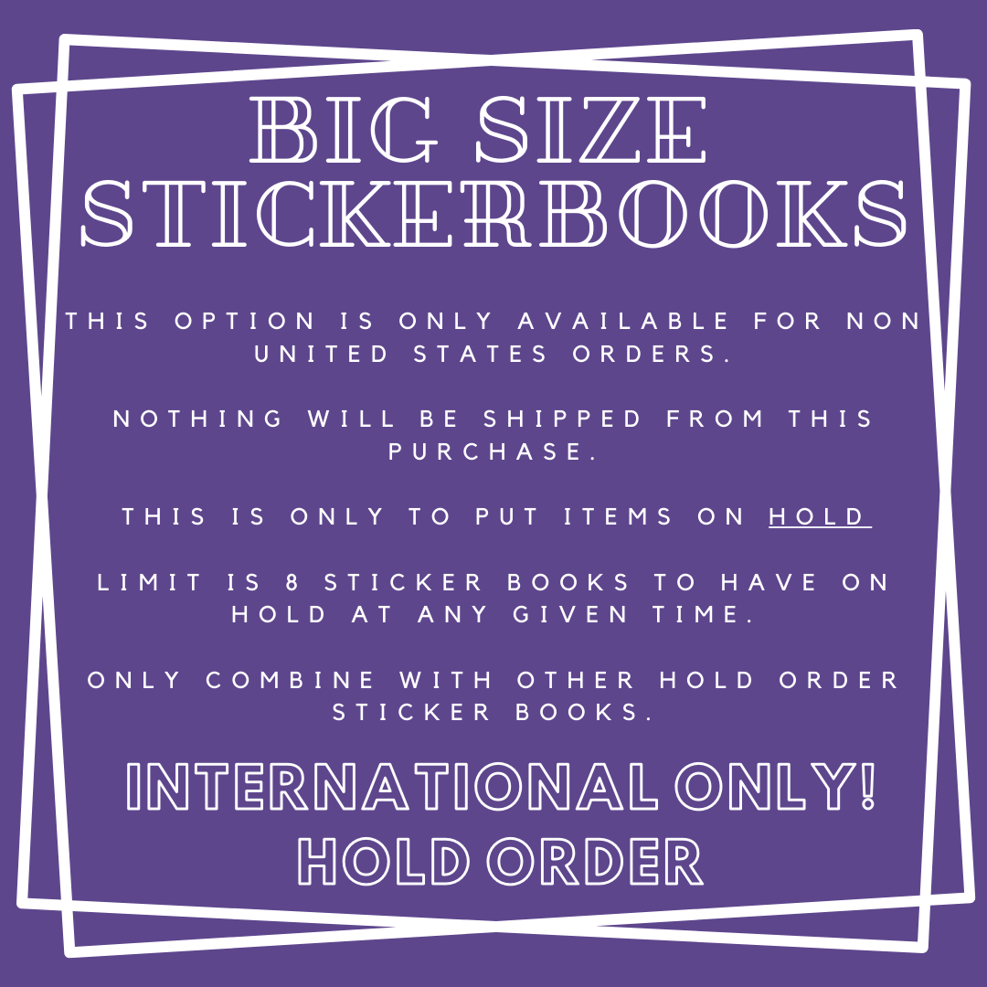 Book Limit: You can hold up to 8 books at a time. Once reached, the hold must be closed and shipped before adding more. Want more than 8 sticker books? Purchase here: Sticker Books