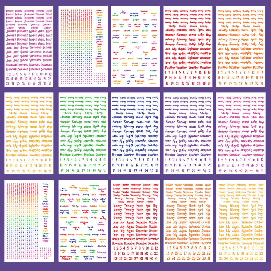 With five different font styles and stickers for months, days, numbers, and holidays, setting up any planner becomes quick and effortless.